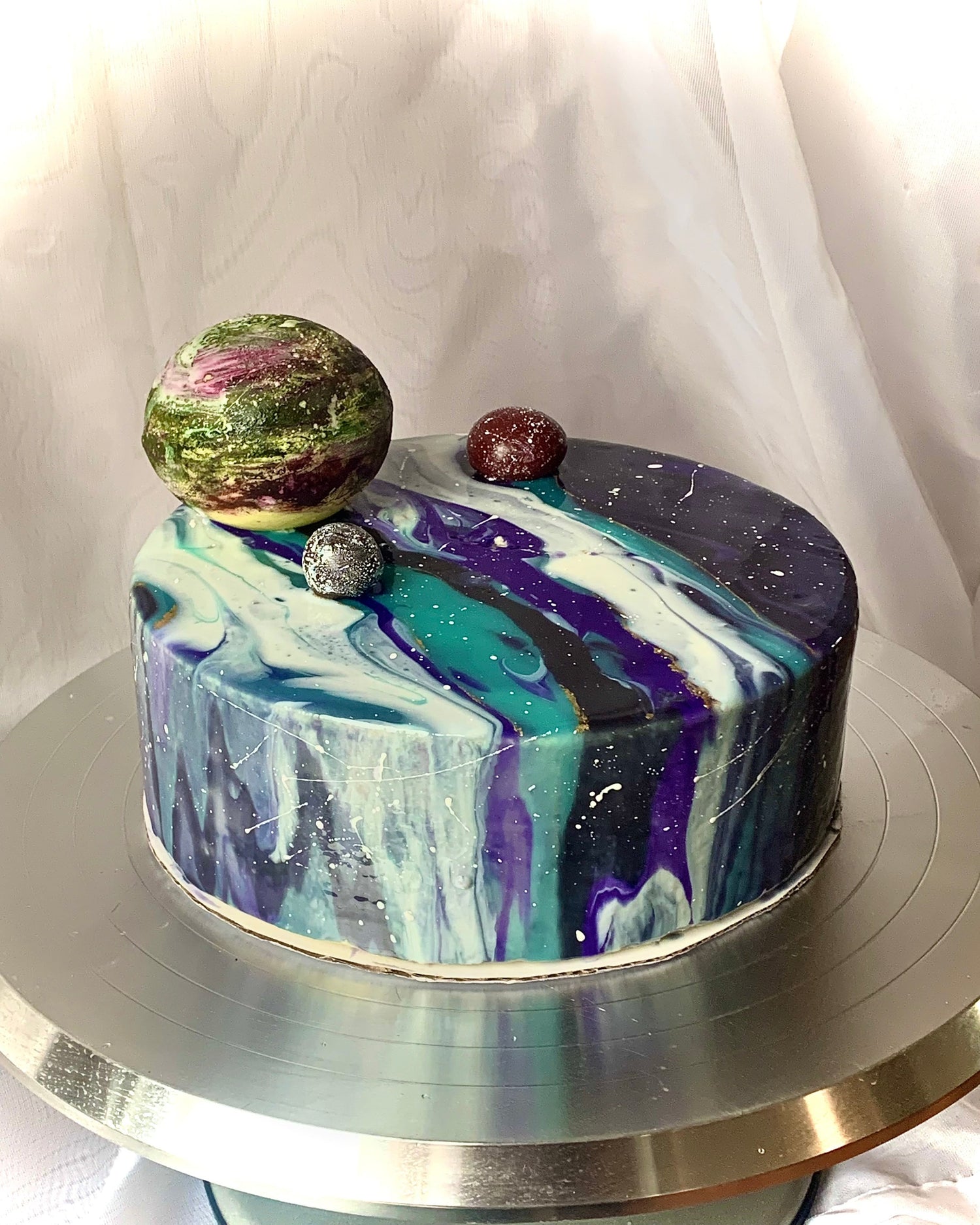 Are you not a cake fan, but like the concept of cakes? That's fine with us! Check out our trendy and stunning glazed galaxy mousse cake.